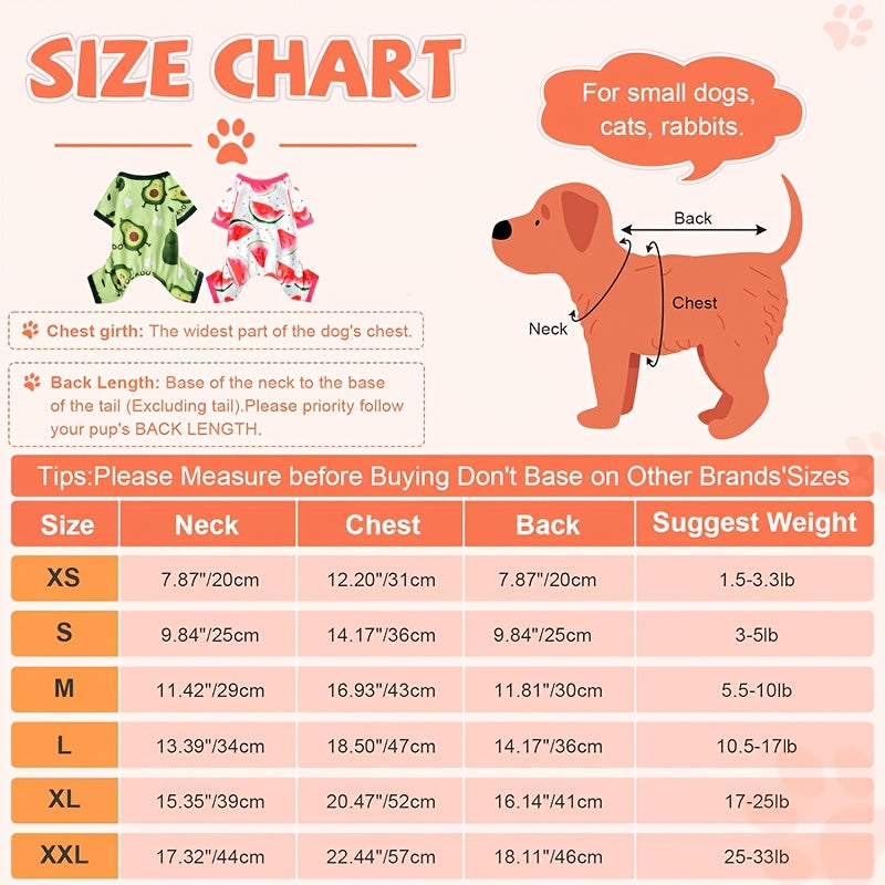 2pc Adorable Avocado & Watermelon Dog Pajamas