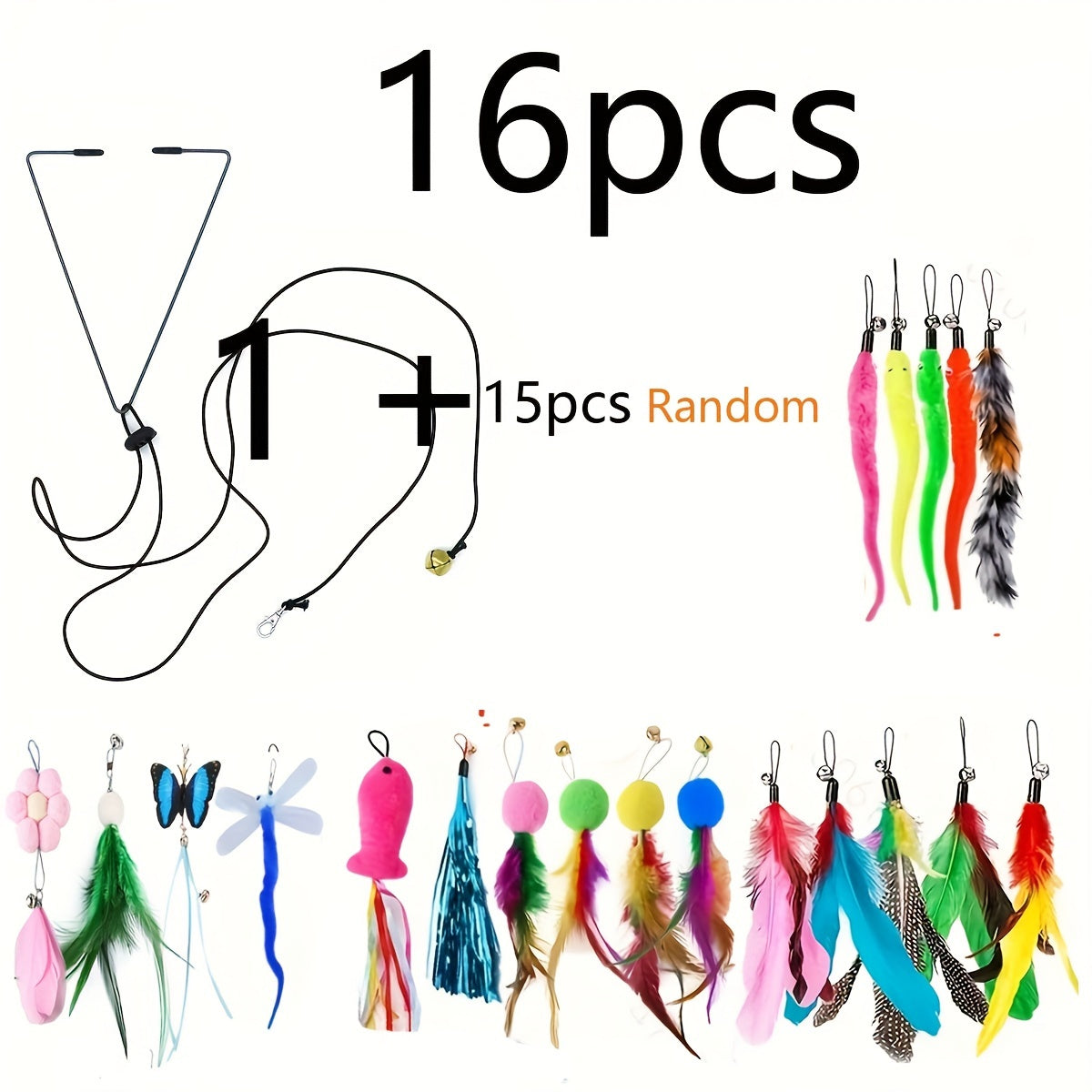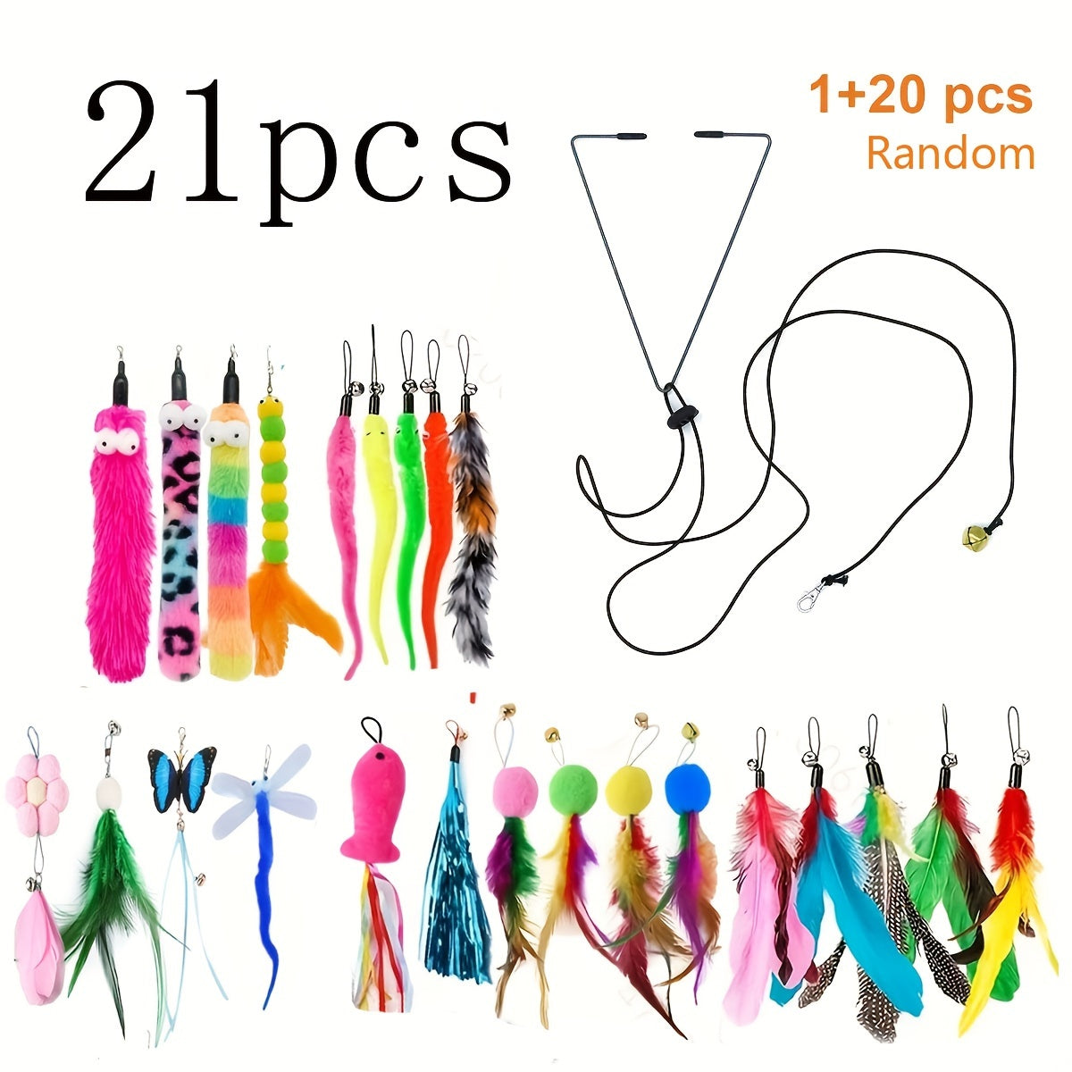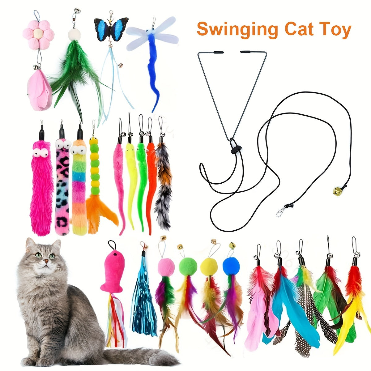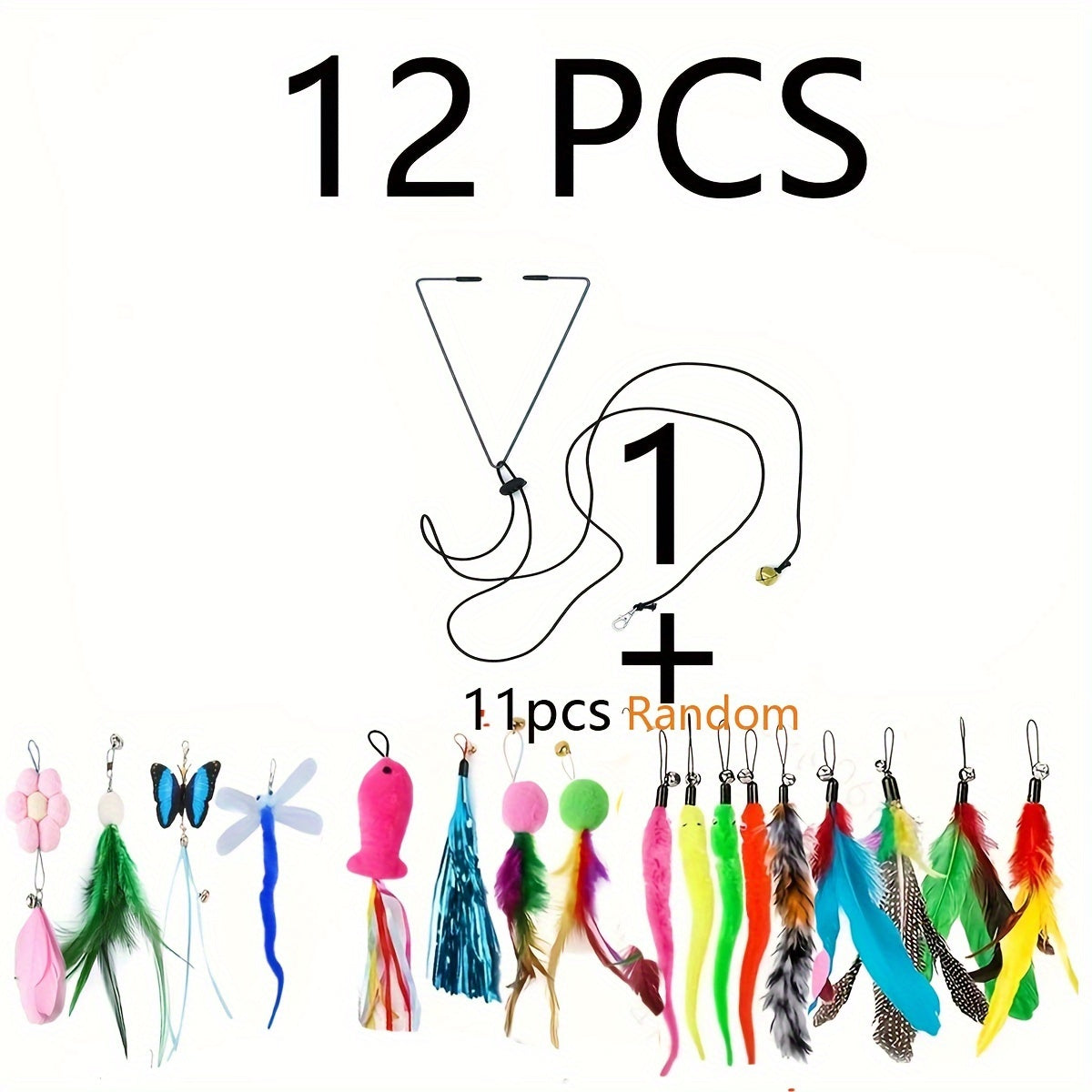 Ignite your cat's curiosity with this premium plush cat toys set featuring feather wands.