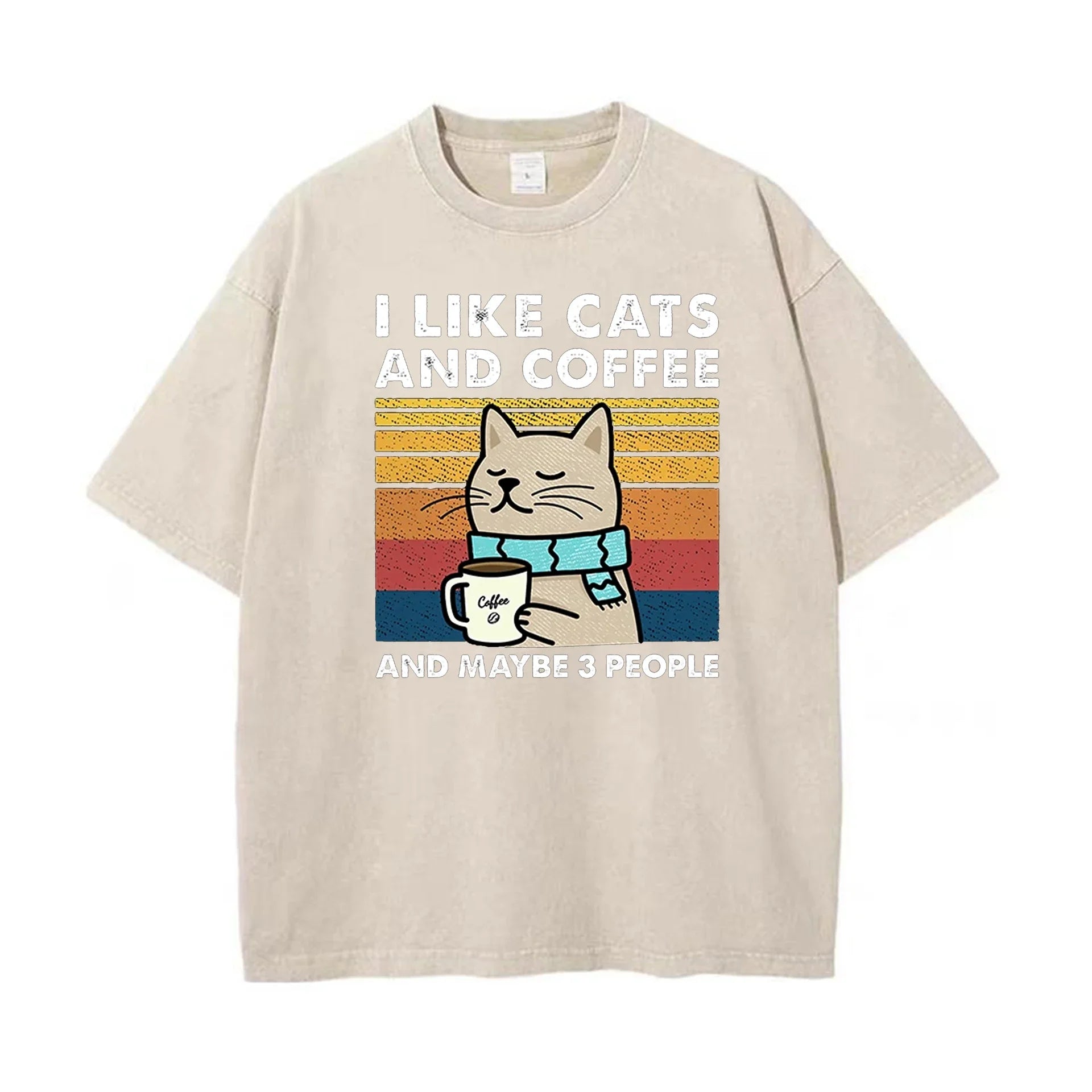 - The I Love Cats And Coffee graphic print adds whimsy and personality to outfits, pairing easily with denim, joggers, or casual shorts.