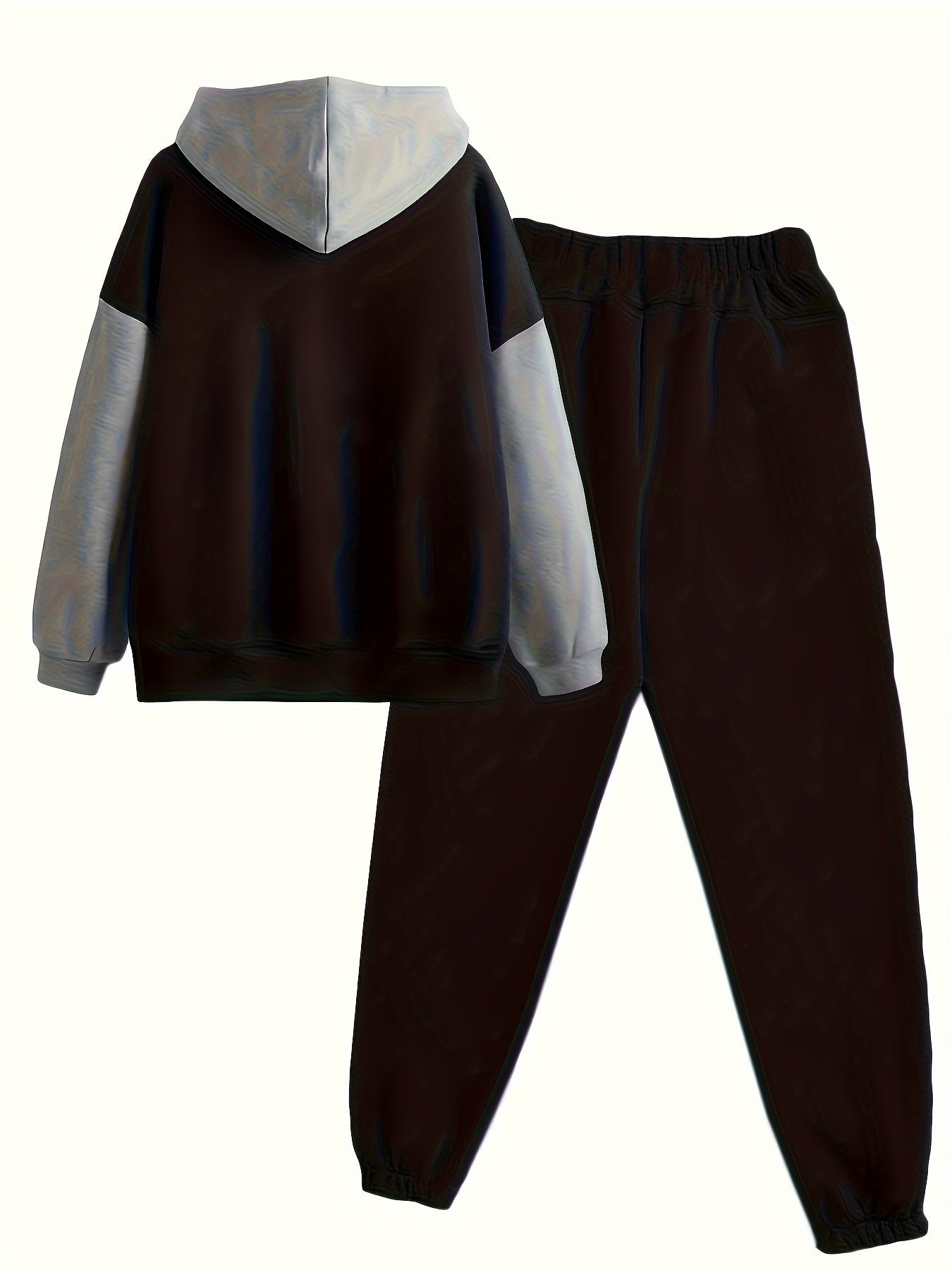 - Includes a hooded sweatshirt and matching pants in a timeless solid color, designed with a relaxed fit, ribbed cuffs, and a comfortable waistband.
